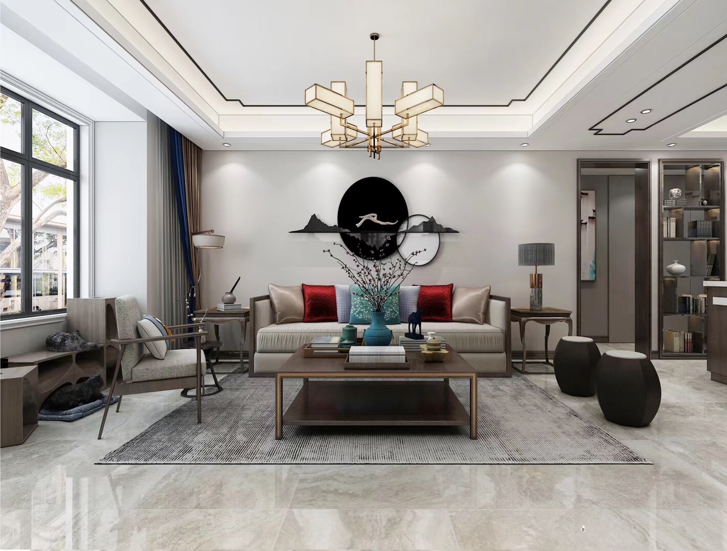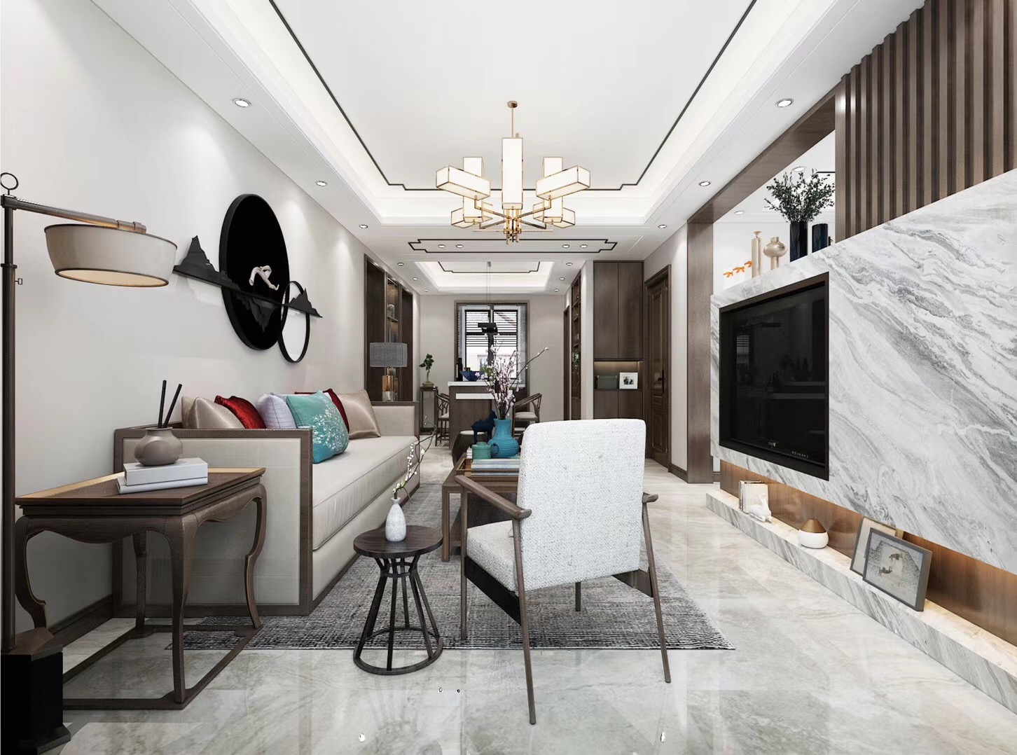 大眾上河灣145平三室兩廳兩衛新中式風格裝修,新中式風格,既能滿足父母對中國風的喜愛,又能滿足年輕人對現代感的需求。
