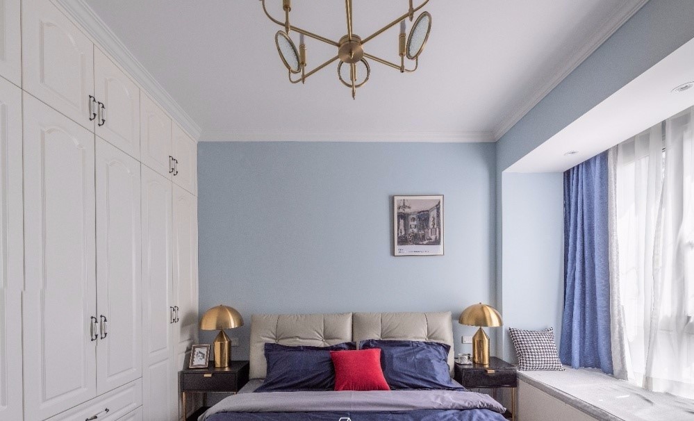 為了讓臥室不那么呆板,選擇了一副古典裝飾畫,用不對(duì)稱的方式打破空間的平衡感,從而使空間更有戲劇性。。